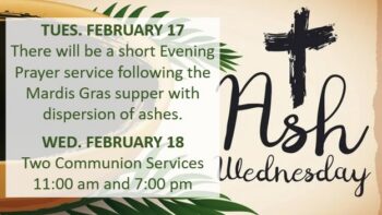 We will have two sung in person services on Ash Wednesday at 11 am and 7 pm.